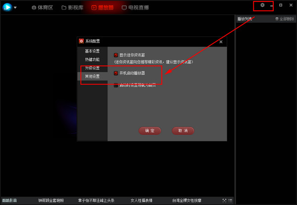 點(diǎn)擊右上角設(shè)置按鈕,在彈出的對(duì)話框中選擇==其他設(shè)置==去掉啟動(dòng)播放器的勾勾