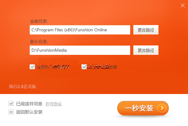 1、首先我們需要下載風(fēng)行播放器客戶端并安裝軟件,安裝時(shí)選擇自定義安裝,有兩個(gè)設(shè)置熱門海報(bào)屏保和作為默認(rèn)播放器的選項(xiàng),這里看個(gè)人需要選擇,注意安裝路徑不要選擇c盤。