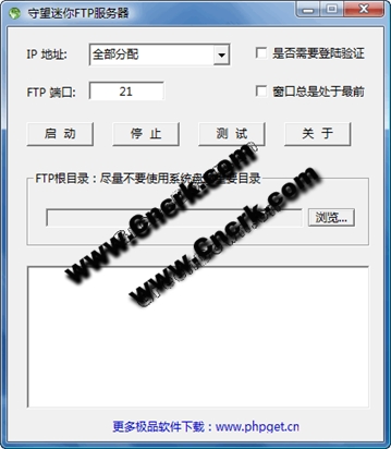 無需任何安裝,不修改注冊表,刪除時直接刪除所有相關(guān)文件就行了。程序放在任何目錄均可運行。這是一個小巧靈活的FTP服務(wù)器工具,