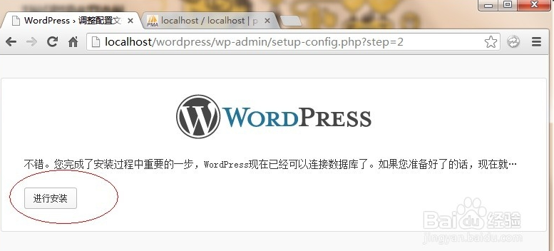 訪問(wèn)本地地址,本文是以localhost/wordpress目錄進(jìn)行安裝的,點(diǎn)擊創(chuàng)建配置文件: