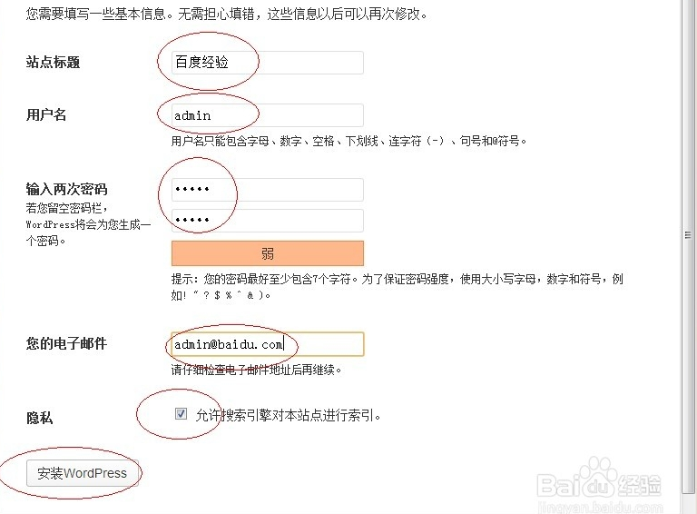 在安裝WordPress最后一步,有一行文字是:是否讓訪問(wèn)站點(diǎn)的內(nèi)容;這個(gè)功能從WordPress 3.5也是可以單獨(dú)勾選設(shè)置了;