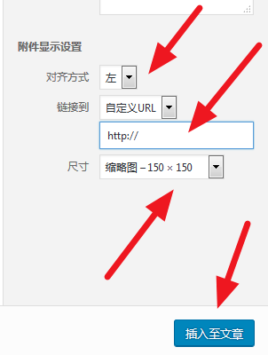 點(diǎn)擊右下角的附件顯示設(shè)置,可以對(duì)齊,方式可以有左中要反種,然后鏈接到一個(gè)網(wǎng)址,還可以是其他附件;尺寸可以根據(jù)自己的喜好選擇,最后選擇插入,點(diǎn)擊插入之文章