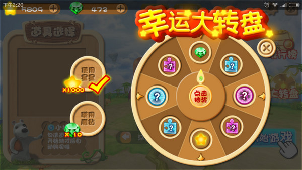 打開游戲后,屏幕左方是道具窗口,玩家可以購買道具對本局游戲生效.屏幕中央是角色,玩家可以點(diǎn)擊角色下方的方向鍵切換不同的角色屏幕的右方是寵物。玩家可以點(diǎn)擊寵物下方的方向鍵切換不同的寵物在屏幕的右上角可以調(diào)整系統(tǒng)的音量和音樂的大小。選好角色、寵物和道具就開始游戲吧!點(diǎn)擊左下角的跳躍按鈕可以讓蘇珊跳過小的陷阱。