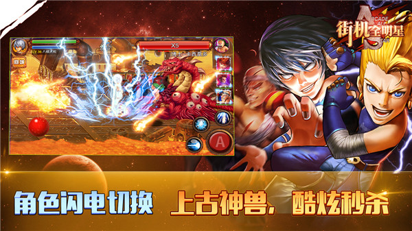 傭兵切換系統(tǒng)不同于傳統(tǒng)模式單一角色戰(zhàn)斗的格斗游戲,《街機全明星》獨創(chuàng)了實時傭兵切換系統(tǒng),副本中一共可以攜帶4個傭兵,攜帶的傭兵都是大家耳熟能詳?shù)慕謾C明星們,在戰(zhàn)斗過程中傭兵們可隨意切換,只要攜帶的傭兵不是死亡狀態(tài)即可。 在副本中所有攜帶的傭兵死亡之后,就會彈出復活界面,使用鉆石即可復活傭兵,便可與BOSS戰(zhàn)斗到生命的最后一秒。