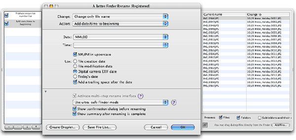 A Better Finder Rename提供了一套完整的重命名選項(xiàng),分為15個(gè)類別,涵蓋的所有文字,字符,位置,轉(zhuǎn)換和截?cái)喙δ埽銜?huì)期望從一個(gè)文件更名,但它不會(huì)停在那里。
