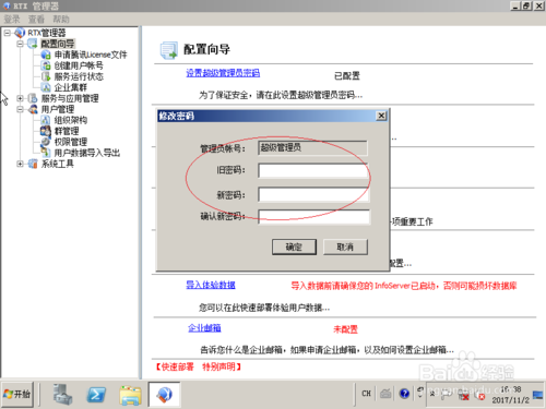 打開RTX管理器,此時管理員的密碼為空,您可以在"登錄"->"修改密碼",重新設置管理員密碼,如下圖所示: