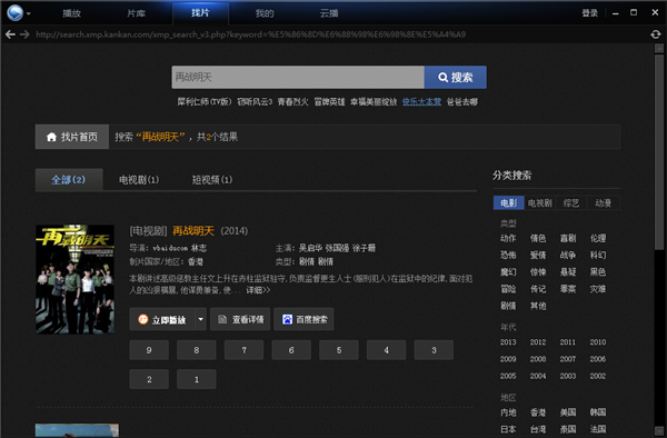 5、如果在上面所提供的地方沒有找到你想要的資源,你可以進入找片功能區(qū)域,通過資源關鍵詞,搜索到其它視頻網站資源