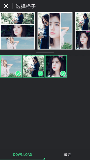 拼圖處理過程流暢、直觀,賦予用戶極具創(chuàng)意的控制體驗(yàn)。 點(diǎn)擊選擇格子模板,就能看到模板拼圖效果。