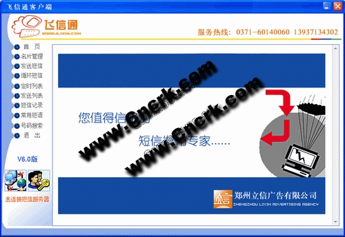 “飛信通”企業(yè)短信服務(wù)系統(tǒng)是鄭州立信廣告有限公司針對廣大企事業(yè)單位的客戶服務(wù)、營銷而開發(fā)推廣的一套先進(jìn)的短信客服軟件系統(tǒng)。該系統(tǒng)以手機(jī)短信為溝通手段 ,以短信快速、準(zhǔn)確、互動、低價、綠色環(huán)保、溫馨宜人的信息溝通方式取代傳統(tǒng)的電話、上門拜訪和信函等效率低下的客戶服務(wù)手段,大幅度提高應(yīng)用單位的服務(wù)質(zhì)量和效率,為全面提高客戶的忠誠度、提升品牌形象提供了一種犀利的武器。
