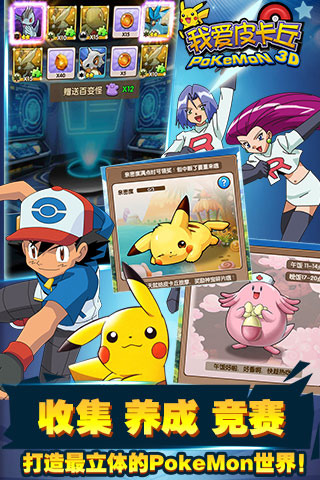童年回憶,全面重溫!現(xiàn)在下載我愛皮卡丘手游,登陸就送超萌皮卡丘。全3D模型再現(xiàn)精靈世界,升星進(jìn)化經(jīng)典玩法一個(gè)不少!超強(qiáng)神寵,等你馴服;超猛BOSS,約你來戰(zhàn)。更有每日簽到、VIP特權(quán)、鉆石獎(jiǎng)勵(lì)多重驚喜,福利滿滿只等你來!【游戲特點(diǎn)】