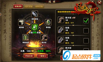 雖然我們的終極目標是紫裝乃至最高級的橙裝,但是新手階段推圖獲得的白裝可以用于武將進階,精英副本獲得的綠裝可以先給出戰(zhàn)武將穿上,前期綠裝增加的戰(zhàn)斗力還是不錯的。不過要記得隨時給綠裝升級,裝備等級上限與武將等級有關,一旦武將升級,記得立刻強化裝備。另外,有富余的白裝、綠裝,可以攢起來慢慢合成高品質裝備,要是運氣好、一不小心合出幾件紫裝,那你就可以碾壓群雄了!