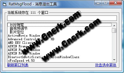 程序會(huì)列出所有窗口的標(biāo)題,點(diǎn)“攻擊選定窗口”就可以了??梢詫?duì)付IcwSword、卡巴、瑞星、金山等安全工具的主界面。