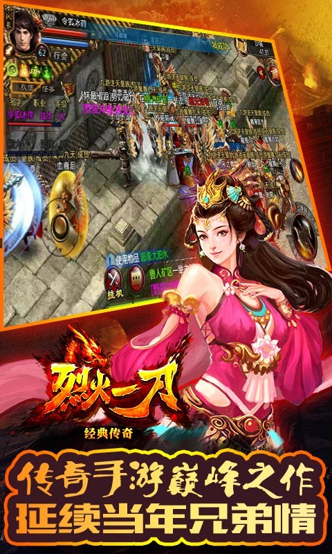 《烈火一刀》:魔幻題材的經(jīng)典傳奇戰(zhàn)斗手游,100%再現(xiàn)傳奇經(jīng)典玩法;嗜血PK、沙城爭霸、酷炫坐騎、超級BOSS、新式副本等應(yīng)有盡有;豐富的PVE和PVP玩法,全自由化的PK,激烈刺激的對抗,更加真實(shí)的打斗效果,秉承經(jīng)典的同時,也讓它們更具特色,與你一起回味精彩傳奇世界,殺出一個新傳奇!