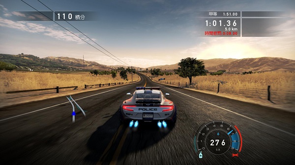 對(duì)于一個(gè)游戲新手來說。賽車游戲看起來是最容易上手的,“就像公園里的碰碰車一樣吧”大家常這么想。因此真正易上手的競(jìng)速,不應(yīng)再駕馭車輛的難度上有過多的障礙。并且在賽道與賽車的搭配上,也盡力做到賽車不被賽道折騰——?jiǎng)硬粍?dòng)就去減速沙坑里中場(chǎng)休息。Criterion Games不僅把新一代極品飛車的賽道鋪設(shè)的寬闊平直,更是為兩側(cè)布上勝景。在如畫的風(fēng)景中與風(fēng)同行,又有哪一個(gè)玩家會(huì)拒絕呢?可是如果真正沒有了挑戰(zhàn)整個(gè)競(jìng)速游戲的駕駛過程就會(huì)活像著名游戲作品——沙漠巴士,并且很早時(shí)候游戲設(shè)計(jì)師們就發(fā)現(xiàn)了這點(diǎn),所以我們看到上世紀(jì)80年代中類似縱版射擊的競(jìng)速游戲Road Fighter都通過制造復(fù)雜路況的方式來打造一個(gè)不需要依靠駕駛技術(shù)而依靠反應(yīng)速度來取勝的游戲規(guī)則?!稑O品飛車熱力追蹤》系列中警車的出沒更是將這種反應(yīng)考驗(yàn)提升了一個(gè)境界,玩家不僅需要靠反應(yīng)還需要靠盤算以及一些外加的運(yùn)氣因素。
