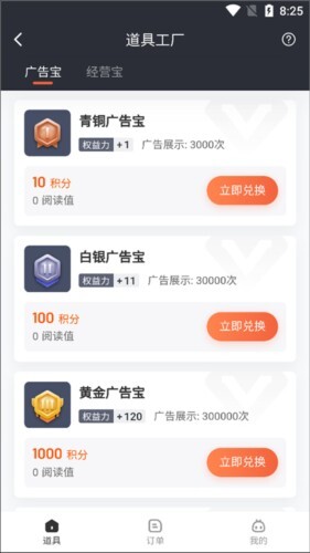 2. 在已打開的道具工廠頁面里,將積分兌換成相應(yīng)的廣告寶。