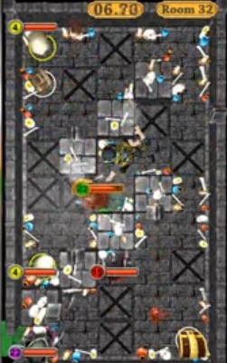 Swipey Rogue《重?fù)袅髅ァ穼⒂?00個(gè)設(shè)計(jì)關(guān)卡,也有自動(dòng)生成關(guān)卡的自由模式。本作的重點(diǎn)并非是戰(zhàn)斗,而是需要玩家不停的躲避各種陷阱。玩家可以通過滑動(dòng)屏幕來更改角色的行動(dòng)方向。當(dāng)玩家進(jìn)入房間后,需要快速規(guī)劃路線,穿過陷阱找到房間內(nèi)的藥物和金幣。