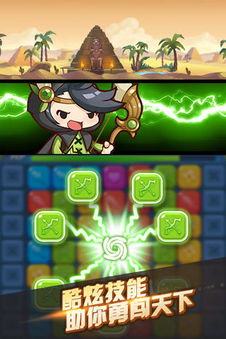 1、游戲將三消與RPG戰(zhàn)斗完美的結合在一起;2、不同的方塊對應不同的英雄,攻擊效果華麗;