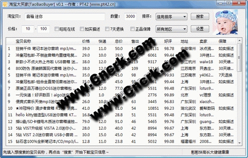 淘寶大買家(TaoBaoBuyer) 是一款方便淘寶買家對(duì)淘寶的海量寶貝中的價(jià)格、快遞費(fèi)、已賣出數(shù)量、賣家信用、賣家好評(píng)率等信息進(jìn)行搜索、比較、排序的綠色小軟件