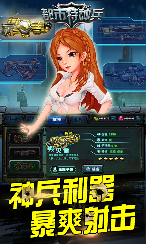 都市特種兵手游破解版 v3.0.0 無限金幣 都市特種兵安卓版是一款炫酷刺激的射擊類動作手游。該游戲?qū)⒕喸於际?015射擊傳奇,多款霸氣高強能的武器裝備,助你在BOSS大戰(zhàn)中一展拳腳,神兵利器,暴爽射擊,感受最原始最勁爽的射擊快感。