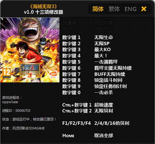 海賊無雙3修改器 v1.0 免費版 海賊無雙3修改器 v1.0 免費版