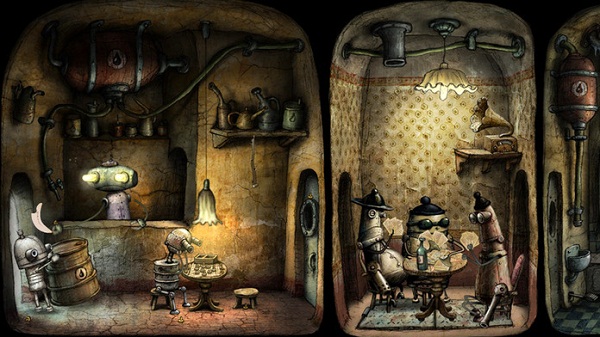 游戲中并沒有多余的對(duì)白,游戲情節(jié)和線索皆靠細(xì)膩的動(dòng)畫來表現(xiàn)。細(xì)膩的手繪風(fēng)格打造后現(xiàn)代機(jī)械場(chǎng)景畫面,讓玩家置身在這部充滿后現(xiàn)代機(jī)械情調(diào)的游戲中時(shí),儼然彷佛隨著主人公一同冒險(xiǎn),一同前進(jìn),一同困惑于種種謎題,一同領(lǐng)略大機(jī)器時(shí)代的綺麗風(fēng)光。