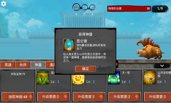 3.游戲中30個(gè)圣物“神器”神農(nóng)鼎、伏羲琴、女?huà)z石、昆侖鏡各種神器盡在咫尺等你開(kāi)啟;