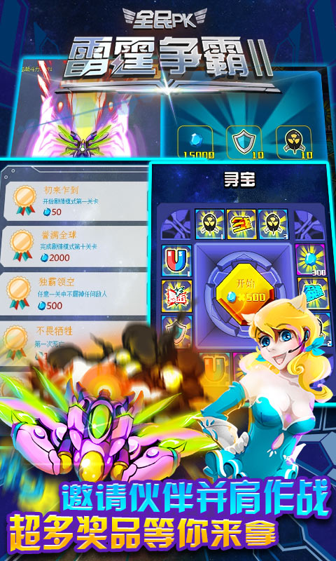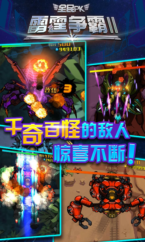 《雷霆爭(zhēng)霸2》里每一位玩家不僅能體驗(yàn)瘋狂屠戮的實(shí)戰(zhàn)射擊,更能收集組合各種酷炫戰(zhàn)機(jī),打造個(gè)性化的華麗機(jī)甲陣容。游戲擁有多元的玩法,三大關(guān)卡模式。在劇情模式關(guān)卡中,玩家可利用各類道具以及戰(zhàn)機(jī)技能努力獲得更高的通關(guān)分?jǐn)?shù),在排行榜中比拼實(shí)力。在BOSS模式關(guān)卡中,通過精彩的微操和時(shí)機(jī)把控,用受到最少次的傷害來獲得更多星級(jí)的通關(guān)評(píng)級(jí),獲得高額獎(jiǎng)勵(lì),體驗(yàn)單挑才是王道的快感。在競(jìng)技模式關(guān)卡中,無窮無盡的關(guān)卡模式極大的考驗(yàn)了玩家的戰(zhàn)力,再通過不斷的挑戰(zhàn)其他玩家來提升競(jìng)技段位,獲得高額獎(jiǎng)勵(lì)。