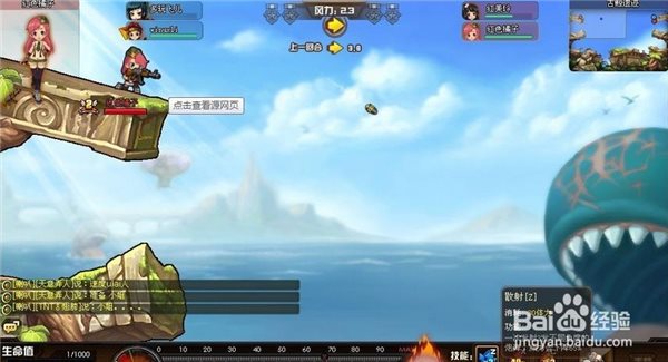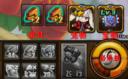 6.玩家在出手前可以點擊1強攻、2連發(fā)、3散發(fā)三種基礎(chǔ)攻擊方式,或點擊z、x、c三種自己攜帶的道具。松開空格后不能再點道具。若點飛行則玩家不會發(fā)射出炮彈,而會把自己拋射出去。若右下角怒火燃燒起來了則可以點擊此火焰,從而發(fā)出必殺技。(每個武器的必殺技都有所不同,詳解各武器介紹)同時玩家也可看到自己所用的道具、寵物、寶物、公會福利、