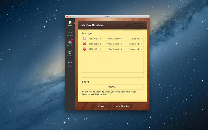 iFax for Mac從來沒有錯過一份傳真。得到移動新傳真或電子郵件通知已經(jīng)到來。電子郵件,隨時打印或下載您的傳真。一個數(shù)字,許多設(shè)備。與iFax分享你的傳真號碼等其他設(shè)備你的iPhone,iPad,蘋果或安卓設(shè)備,傳進來的傳真在你方便的時候。打開郵件,簽名,填滿。你從郵件可以打開一個PDF,Dropbox,或盒子,然后簽字,填滿,郵票,或注釋,然后傳真文檔——所有不需要打印或掃描。文檔掃描儀。掃描文檔iFax手機或平板電腦隨時相機然后傳真給他們。不再笨重掃描儀!Dropbox和郵箱集成。訪問您的文件存儲在云端,在任何時間和任何地方。