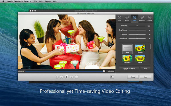 精確潤飾你的視頻和一系列的視頻編輯工具,如合并,旋轉,修剪,作物,濾鏡效果,字幕,水印,和更多。