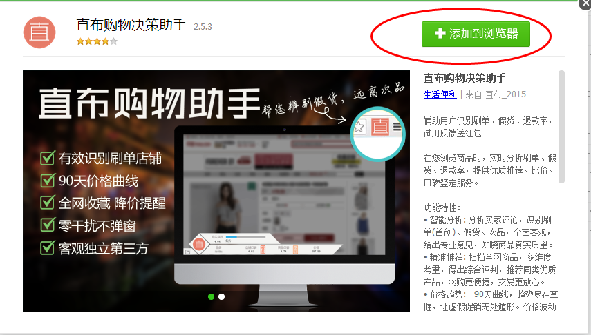 5、添加直布購物決策助手到瀏覽器即可。