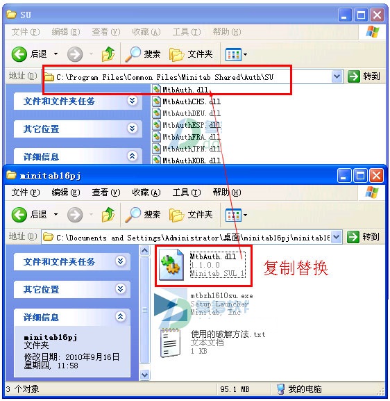 5、將軟件包中的破解文件“MtbAuth.dll”復制到【C:\Program Files\Common Files\Minitab Shared\Auth\SU】目錄中替換即可成功破解;