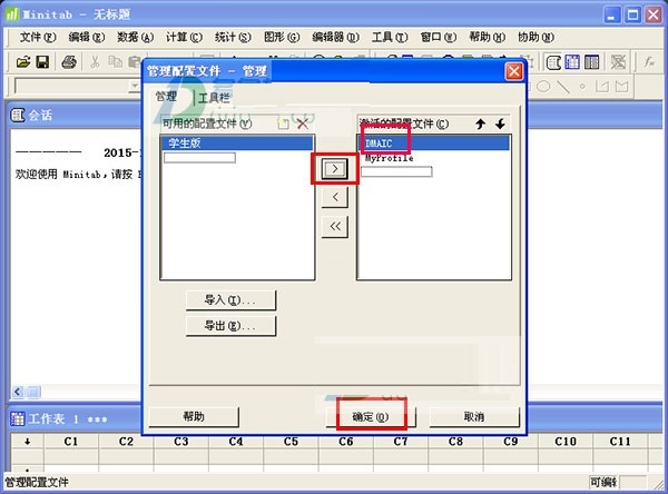 7、DMAIC激活方式如下:依次點擊工具菜單--管理配置文件--選擇DMAIC添加激活--確定即可使用DMAIC。