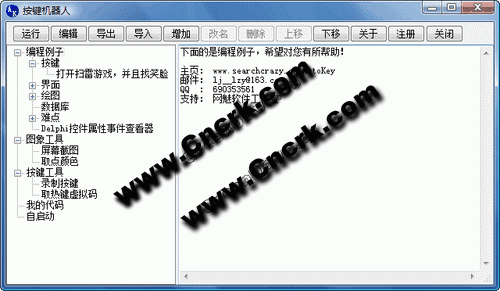 按鍵機(jī)器人可以幫您操作電腦 ,支持動(dòng)作錄制和回放功能。內(nèi)置上百個(gè)函數(shù),提供豐富的例子。腳本還可以生成獨(dú)立的軟件,發(fā)給朋友分享。提供了強(qiáng)大的插件功能擴(kuò)展。只有您想不到的功能,沒(méi)有您找不到的功能。按鍵機(jī)器人可以成為您創(chuàng)業(yè)的利器