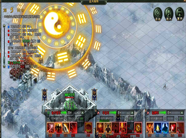 游戲主界面由8個部分組成,依次如下:1、左上角的基本信息區(qū)域:內容包括玩家姓名、頭像、等級、現(xiàn)有禮券、民心、名士等級、金錢、糧草、預備兵等游戲基本信息。