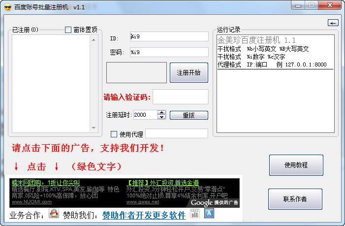 支持換代理ip注冊(cè),本工具的最大特點(diǎn)是簡(jiǎn)單方便快捷,無(wú)需安裝,運(yùn)行即可使用。