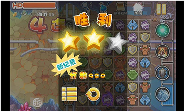 5、每一關(guān),根據(jù)你的消除分?jǐn)?shù),進(jìn)行評分,最好的是滿星過關(guān),這樣,分?jǐn)?shù)會(huì)在增加不少!
