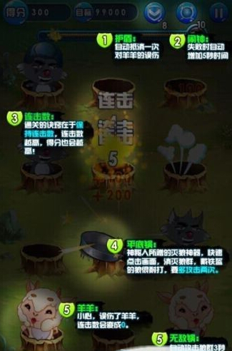 通達(dá)的決竅在于保持連擊數(shù),連擊數(shù)越高,得分也會越高;要小心噢,不要誤傷了羊羊,連擊數(shù)會變成0的噢。