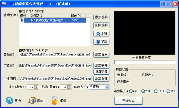 DV視頻字幕合成伴侶是一款視頻字幕制作軟件。支持WMV、ASF、VCD、MPEG等格式。利用這款軟件添加字母簡(jiǎn)單方便。還可以隨意設(shè)置字體大小、顏色等等。是翻譯外國(guó)電影、動(dòng)漫不可缺少的軟件。