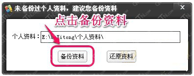 2.點(diǎn)擊按鈕后,會彈出個(gè)備份還原窗口,我們直接點(diǎn)備份資料按鈕軟件會自動備份,直到彈出個(gè)確認(rèn)按鈕,我們確認(rèn)下就完成了!