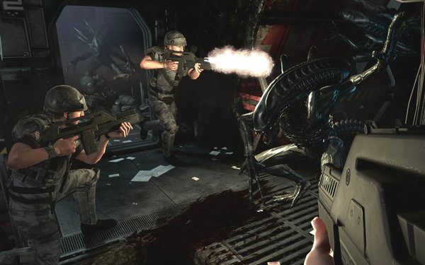 游戲音效可能是該游戲的一大特點了,可以說高質(zhì)量的還原了電影原著,不論是槍聲還是異性的聲音,包括音樂在內(nèi)都相當(dāng)?shù)牟诲e。其實游戲畫面還可以,但是貼圖的質(zhì)量卻讓人很郁悶,游戲中玩家的手電筒照亮范圍不足,而且如果在光亮環(huán)境下打開手電筒,那么整個環(huán)境會變的非常明亮,如果關(guān)閉手電筒,那么即使是在比較光亮的地方任然有些地方看不見。游戲提供多人對抗模式,玩家可以自行選擇人類或者異形。
