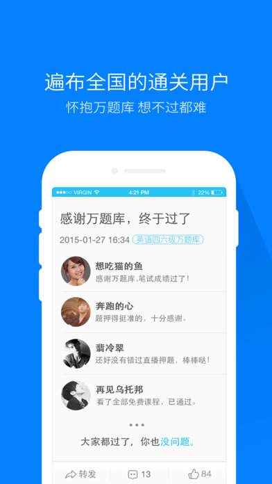 英語(yǔ)四六級(jí)萬(wàn)題庫(kù)app是由北京美好明天科技公司專為準(zhǔn)備考二級(jí)建造師的同學(xué)們打造的一款手機(jī)題庫(kù)app。英語(yǔ)四六級(jí)萬(wàn)題庫(kù)app體驗(yàn)好、而且永久性免費(fèi)、是國(guó)內(nèi)最高品質(zhì)題庫(kù),絕對(duì)的英語(yǔ)四六級(jí)考試通關(guān)神器,題庫(kù)在手,四六級(jí)考試通關(guān)無(wú)憂。【軟件特點(diǎn)】