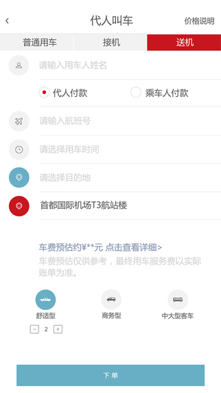 目前,“首約”平臺及線下車輛仍處于試運(yùn)行階段,首批車輛規(guī)模有限,主要集中在機(jī)場、熱點(diǎn)商圈和星級酒店周邊投放。1.服務(wù)類型:即時(shí)用車、預(yù)約用車、接\送機(jī)、代人叫車
