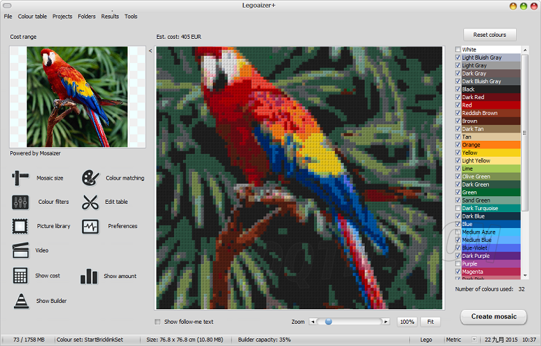樂高積木化工具Legoaizer是一個(gè)免費(fèi)的應(yīng)用程序創(chuàng)建的圖像馬賽克藍(lán)圖用樂高積木和Ministeck部分。