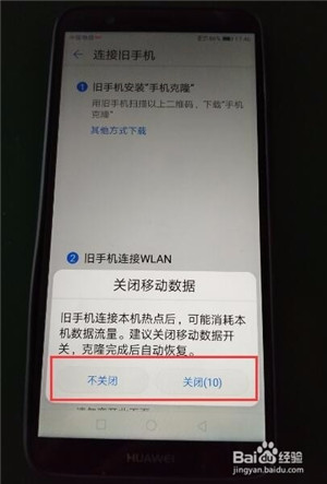 3、如果你的新手機(jī)中已經(jīng)有手機(jī)卡,并開啟了數(shù)據(jù)流量,那么系統(tǒng)會提示你關(guān)閉,如果你是土豪,你可以不關(guān)閉,這個(gè)都是無所謂的。