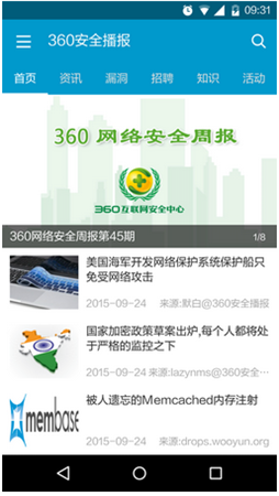 360安全播報(bào)是360出的一款安全資訊應(yīng)用,界面居然還蠻好看的,咱這群整天在網(wǎng)上浪的人總得有一點(diǎn)安全意識(shí),360在這塊兒還是很有一套的。