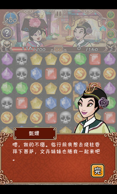 《大話甄嬛》是一款以穿越為題材,帶有角色扮演性質的簡單三消產(chǎn)品,在消除過程中可以給自己的人物加血,可以加金幣,可以攻擊對方,是一款休閑打發(fā)時間的好游戲。也是妹子們最愛玩的游戲哦!記住要闖關哦,后面還有更精彩的內容!