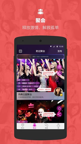 【附近】一個人,太無聊!查看“附近”秀色,結(jié)交有趣的朋友開啟美麗約會,輕輕下拉刷新,煙火即刻幫你約見附近的帥哥美女,Ta的動態(tài)一目了然,交友不再是難題!【聚會】沒朋友,太無趣!刷新“聚會”,尋找你的Club!深邃律動,迷幻節(jié)奏,任你暢選!還能隨時發(fā)起聚會召集“小伙伴”,約會聚會不停歇,從此對寂寞的夜晚SayNo!