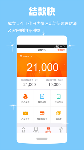 結(jié)款快——成立1個工作日內(nèi)快速現(xiàn)結(jié)保障理財師及客戶的切身利益。
