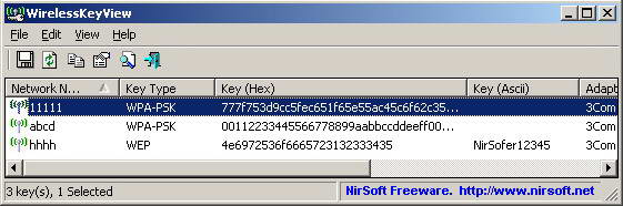 WirelessNetView是一款無線網(wǎng)絡(luò)密碼查看器,讓你可以恢復(fù) Windows 操作系統(tǒng)(非第三方產(chǎn)品)存儲的無線網(wǎng)絡(luò)密匙(WEP/WPA)。